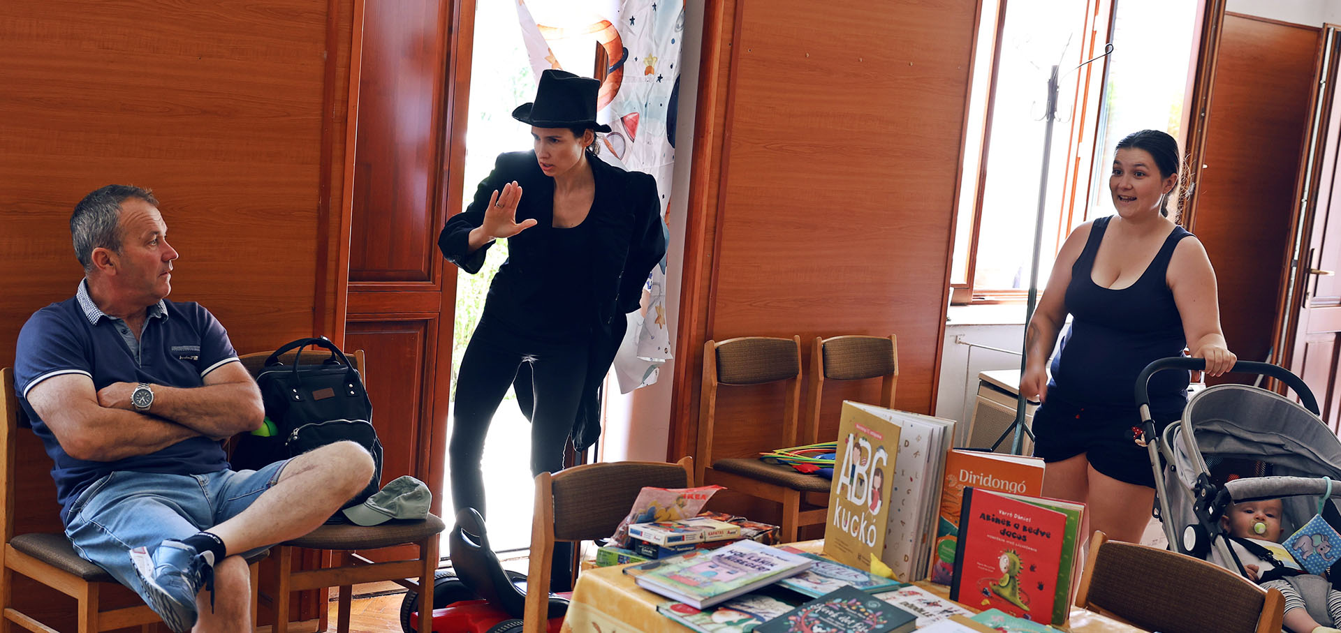 Az előadás után az Olvasósarokban Harmath Artemisz tartott könyvajánlót a kortárs gyerekkönyvek legjavából, és beszélgetett a szülőkkel, pedagógusokkal az olvasás, a mesehallgatás jótékony hatásairól. A beszélgetés alatt Gál Réka Ágota színművészhallgató olvasott a gyerekeknek.