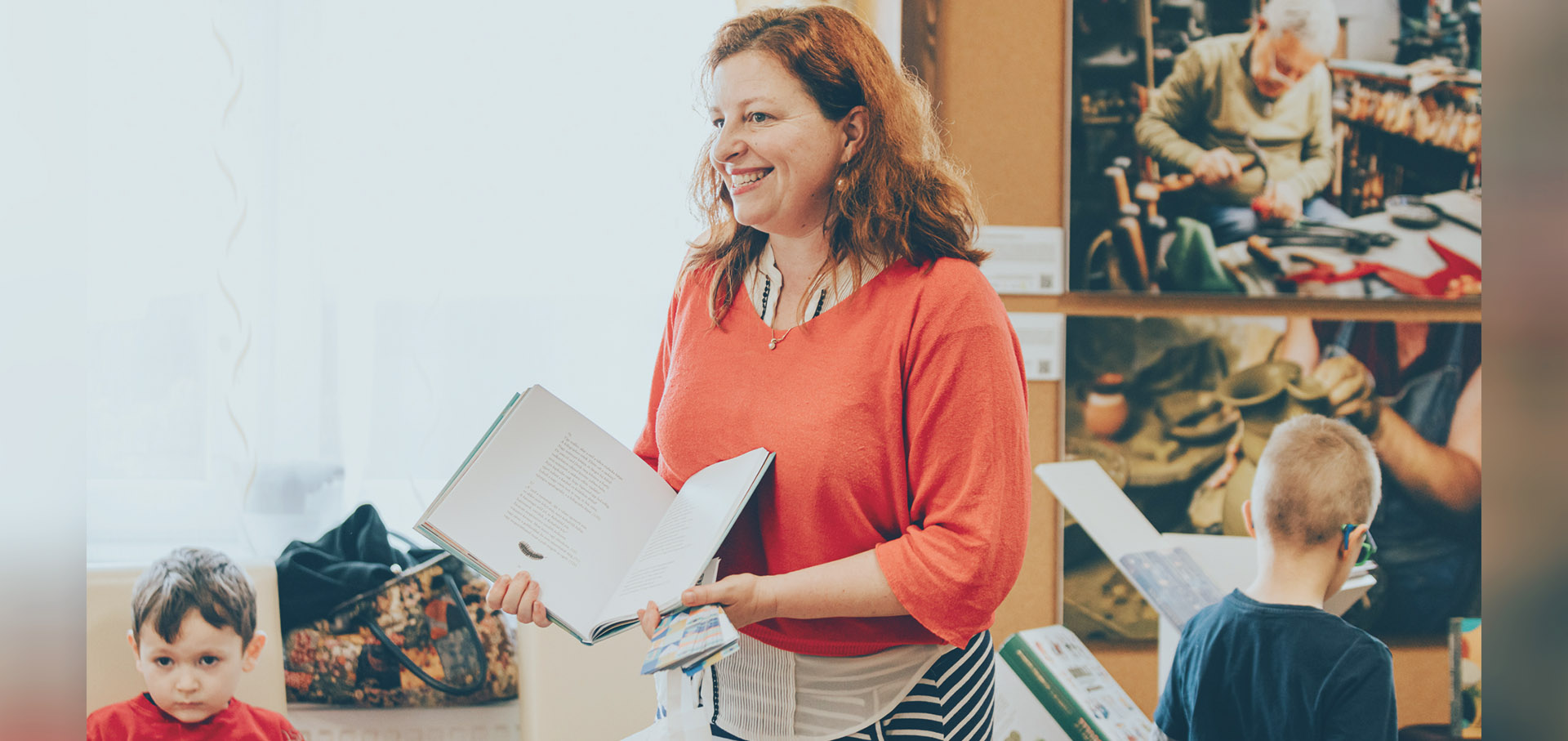 Kortárs zenés-verses műsorral Atlasz Barnabás és Bíró Kristóf színművészek varázsolták el a legkisebbeket, majd az előadás után az Olvasósarokban Harmath Artemisz irodalomtörténész, gyerekirodalmi szakember, a program szerkesztője tartott könyvajánlót a kortárs gyerekkönyvek legjavából, és beszélgetett a szülőkkel, pedagógusokkal az olvasás, mesehallgatás jótékony hatásairól.